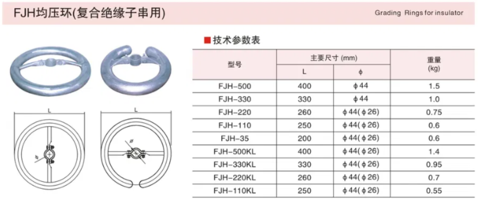 均压环主要用于电压均衡,适用于交流电压。它可以将物体周围的高电压均匀分布,确保环内各部分之间没有电压差异,从而达到电压均衡的效果。